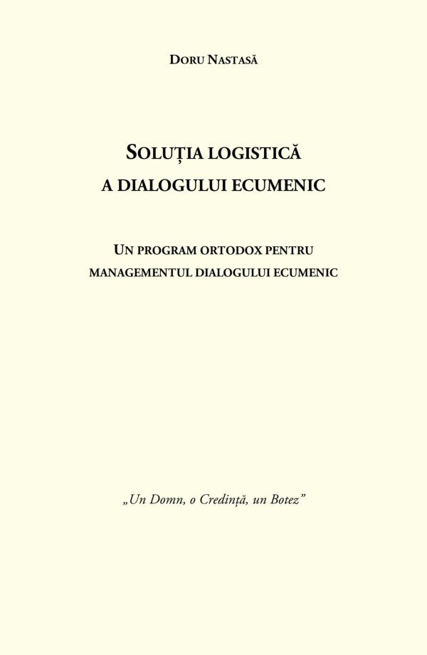 Dialogul ecumenic trebuia încadrat corect în mai multe dimensiuni, în cea teologică, logistică-exterioară, dar și în cea de acord-unitate a Bisericii. Acestea sunt dimensiunile mari în care dialogul ecumenic trebuie încadrat. Volumul încearcă să aducă pe scurt o abordare de management și un program de management pentru dialogul ecumenic, soluție care implică în mare aceste trei dimensiuni, teologică, logistică-externă și acord-unitate.